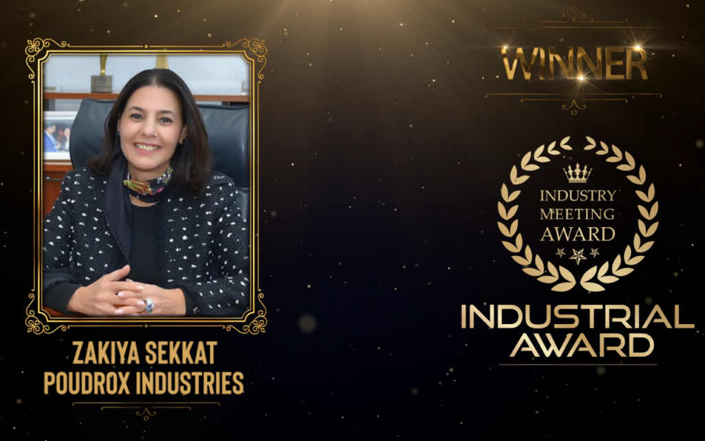 جائزة الصناعة، التي تُعطى نظيرَ الاعتراف بمجهودات وأداء مقاولة صناعية، فضلا عن إنجازاتها وسياستها في مجال “المسؤولية الاجتماعية للشركات RSE ” وكذا أثرها على منظومتها، نالتها عن جدارة مقاولة “POUDROX” الرائد الإفريقي لصباغات والطلاء بالمساحيق، ومَثّلَتْها رئيستها المديرة العامة زكية السقاط.
