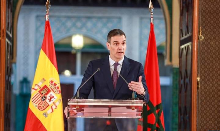 وأكد سانشيز، في ندوة صحفية في ختام زيارة العمل التي قام بها للمملكة، مجددا، موقف الحكومة الإسبانية المعبر عنه في البيان المشترك المعتمد في 7 أبريل 2022، والإعلان المشترك الصادر في ختام الدورة الـ 12 للاجتماع رفيع المستوى المغرب – إسبانيا المنعقد في 2 فبراير 2023.