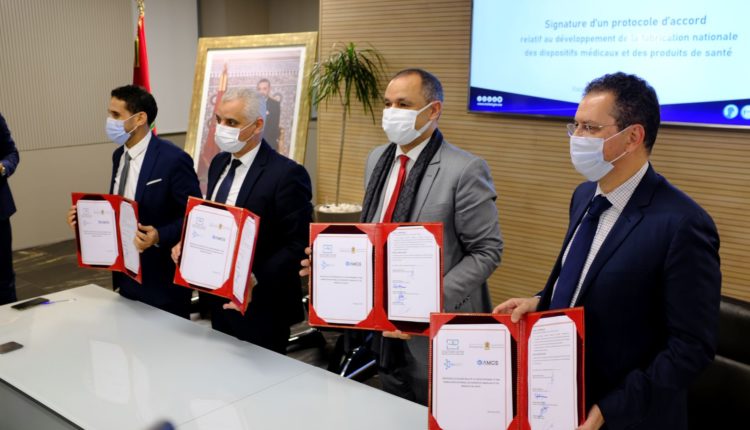 بروتوكول اتفاق يتعلق بتطوير التصنيع والتزوُّد المحلي للأجهزة الطبية والمنتجات الصحية بالمغرب، تم التوقيع عليه يوم الثلاثاء 28 دجنبر 2021، على هامش اللقاء المنظَّم بمقر وزارة الصناعة والتجارة لتركيز الأضواء على المنتجات المنجَزة من طرف “قطب التنافسية والابتكار الطبي” الذي ينتمي إليه أزيد من 40 عضواً ويضم قطاعات وزارية وصُنّاع وجامعات فضلًا عن خبراء.