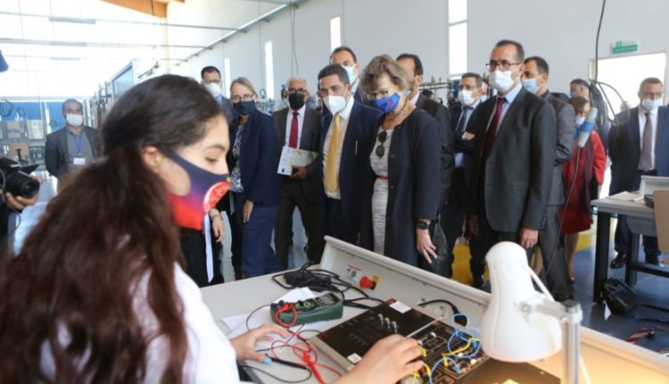 اشرف سعيد أمزازي، وزير التعليم، رفقة كلوديا ويدي، سفيرة الاتحاد الأوروبي بالمغرب، و هيلين لوغال سفيرة فرنسا بالمغرب، وميهوب مزواغي مدير الوكالة الفرنسية للتنمية بالمغرب، يوم الأربعاء 19 ماي 2021، بطنجة على زيارة معهد التكوين في مهن الطاقات المتجددة والنجاعة الطاقية.