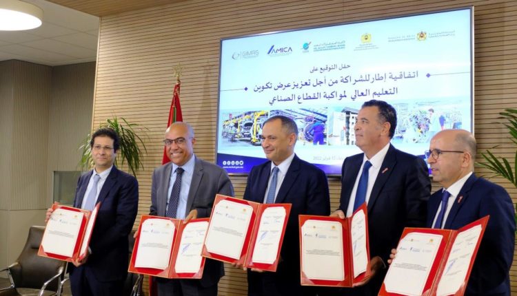 اتفاقية إطار لتعزيز تكوين المهندسين والأطر المتوسطة والتقنيّين العاليِين بمختلف القطاعات الصناعية، جرى توقيعُها يوم أمس الثلاثاء بالرباط، جمعت بين وزارتَيْن (الصناعة والتجارة ، والتعليم العالي والابتكار) فضلاً عن جمعيات مهنيّي قطاعات صناعة الطيران والسيارات ( GIMAS و AMICA ) والـCGEM .