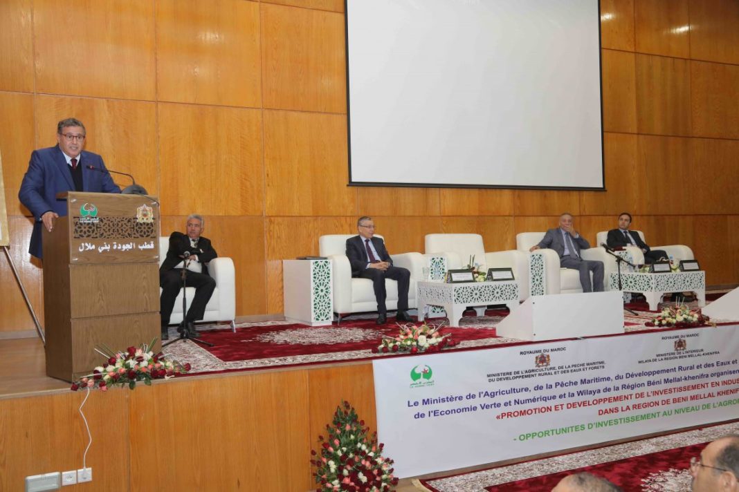ترأس عزيز أخنوش، وزير الفلاحة والصيد البحري والتنمية القروية والمياه والغابات، ومولاي حفيظ العلمي، وزير الصناعة والتجارة والاقتصاد الأخضر والرقمي، يوم الثلاثاء 3 دجنبر 2019، بمقر القطب الفلاحي ببني ملال، حفل افتتاح لقاء حول تشجيع الاستثمار في الصناعات الغذائية بجهة بني ملال خنيفرة، بحضور والي جهة بني ملال خنيفرة، ورئيس المجلس الإقليمي، وعدد كبير من المنتخبين المحليين وممثلي مهنيي القطاع والمؤسسات العمومية.