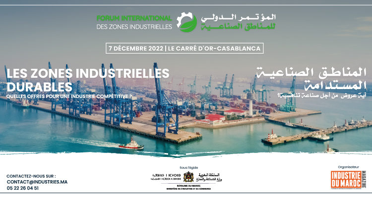 تنظم مجلة صناعات المغرب، industries du Maroc magazine يوم الأربعاء7 دجنبر 2022، تحت رعاية وزارة الصناعة والتجارة، النسخة الثانية من المنتدى الدولي للمناطق الصناعية، تحت شعار “المناطق الصناعية المستدامة، أية عروض من أجل صناعة تنافسية؟”.