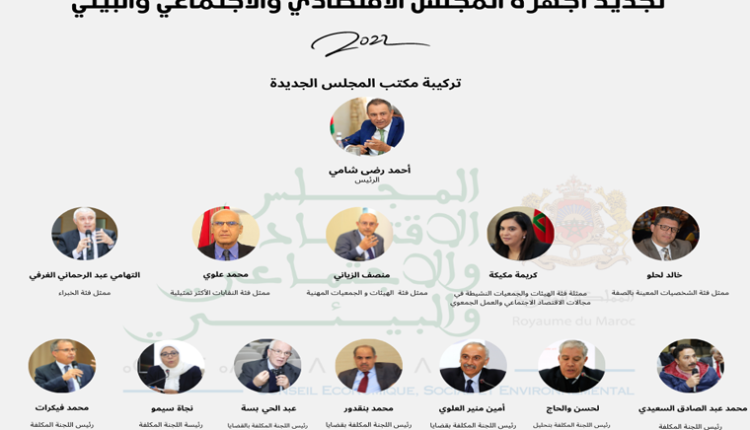 وتبعاً لنتائج الاقتراع، فإن المكتب الجديد للمجلس الاقتصادي والاجتماعي والبيئي برسم 2022، يتشكل، بالإضافة إلى السيد أحمد رضى شامي، رئيس المجلس، مِن: