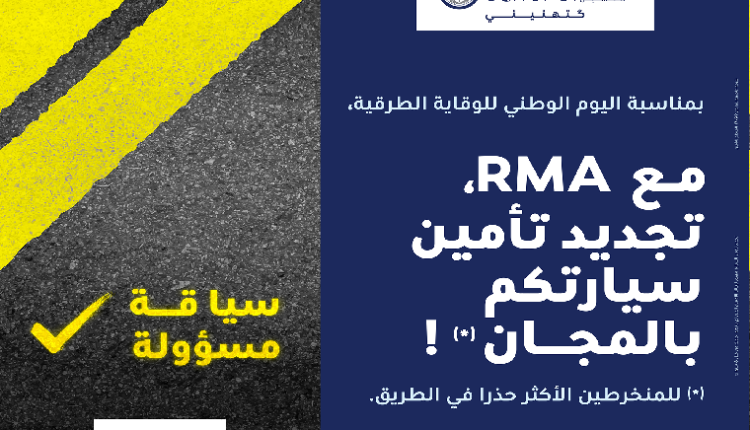 أعلنت الملكية المغربية للتأمين (RMA) ، عن مبادرة تهدف إلى مكافأة “السائقين المسؤولين”، من خلال تجديد عقود تأمين سيّاراتهم بالمجان، للذين لم يرتكبوا أي حادث منذ أكثر من 5 سنوات.
