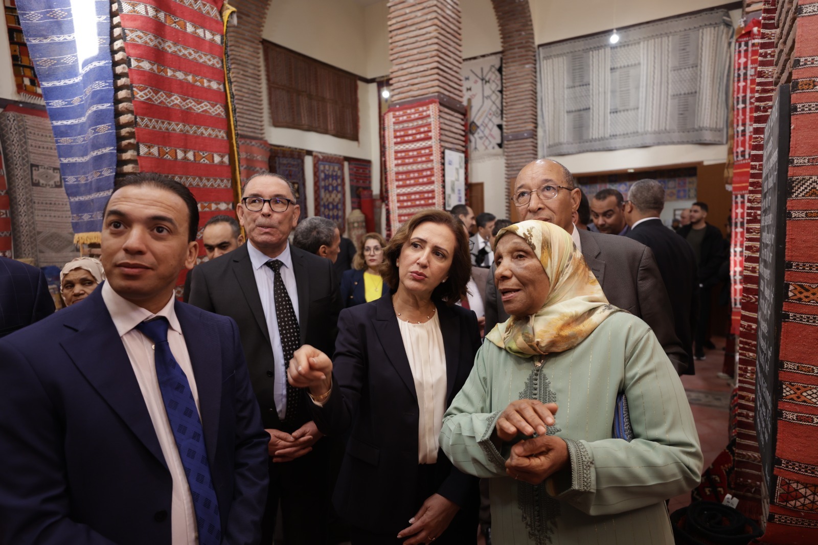 كما شملت الجولة فضاء «دار الزربية»، الذي يوثق تاريخ زربية تازناخت ويعرض مجموعة متميزة من الزرابي، يعود تاريخ بعضها إلى أكثر من مائة سنة.