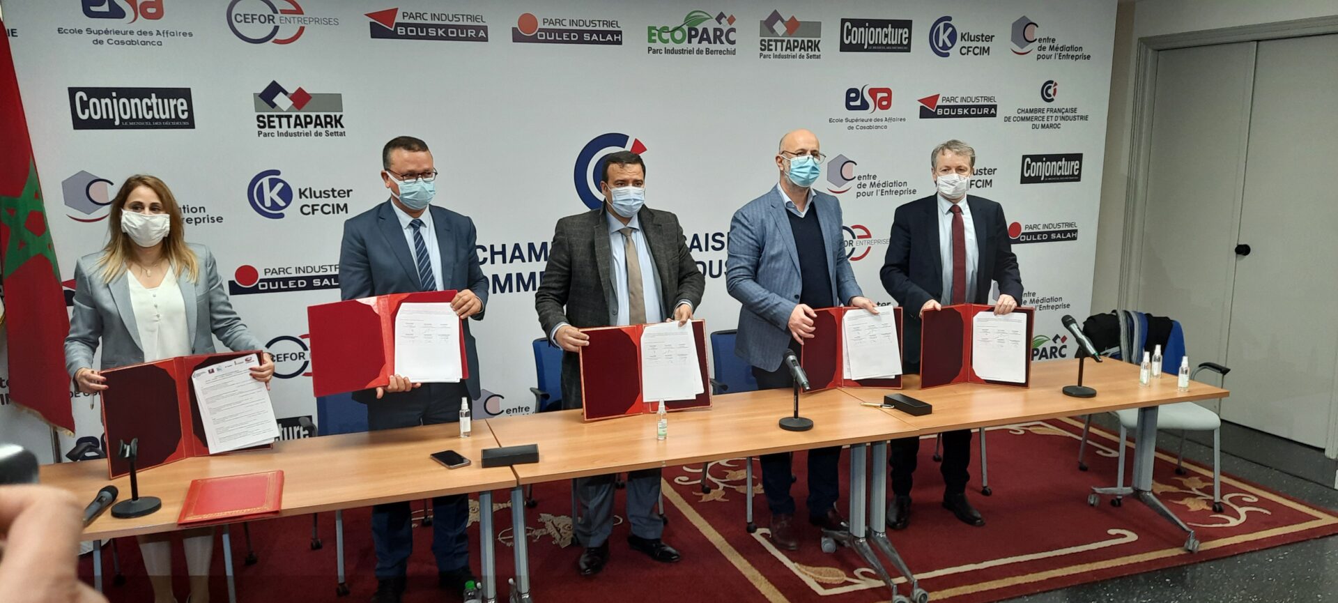 تم توقيع اتفاقيتان للشراكة من أجل ريادة الأعمال وتنمية المهارات في الصناعة، وذلك يوم الاثنين 8 فبراير 2021، بمقر غرفة التجارة والصناعة الفرنسية بالدار البيضاء.