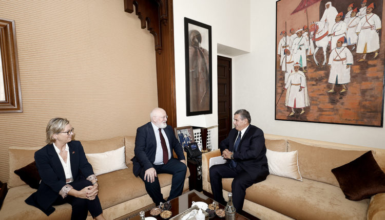 استقبل رئيس الحكومة عزيز أخنوش، اليوم الثلاثاء 18 أكتوبر 2022 بالرباط، فرانس تيمرمانس، نائب الرئيس التنفيذي لمفوضية الاتحاد الأوروبي المكلف بالاتفاق الأخضر، الذي يقوم بزيارة إلى الرباط يومي 18 و19 أكتوبر لتوقيع الشراكة الخضراء بين الاتحاد الأوروبي والمملكة المغربية بشأن الطاقة والمناخ والبيئة.
