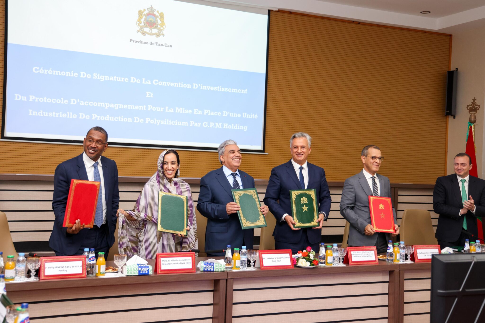 تم التوقيع يوم السبت في طانطان على اتفاقية بين الوزير المنتدب المسؤول عن الاستثمار والتقاىية وتقييم السياسة العامة كريم زيدان والرئيس التنفيذي لشركة Holding الأمريكية فيليب جنكينز لإنشاء وحدة صناعية متخصصة في الإنتاج من البولي سيليكون في الإقليم.