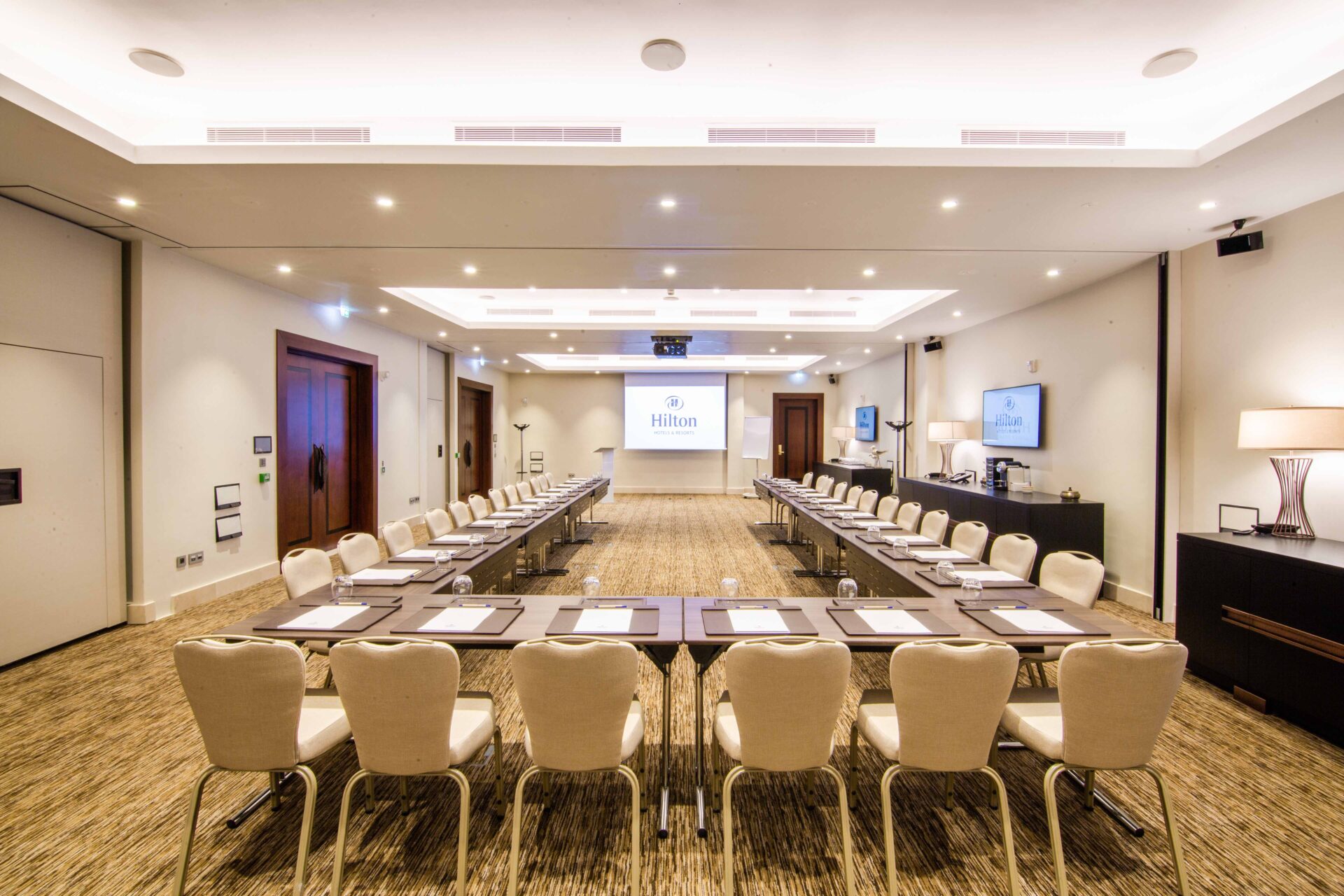 تضع جوهرة مجموعة هيلتون رهن الإشارة 15 قاعة لاحتضان اللقاءات مجهزة بأحدث التقنيات وتتيح استضافة ما يناهز 1500 شخص.