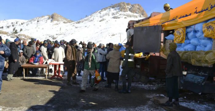 وفي تصريح لوكالة المغرب العربي للأنباء، أكد رشيد البدري المسؤول عن المشاريع بمؤسسة محمد الخامس للتضامن، أنه تبعا للتعليمات الملكية السامية لصاحب الجلالة الملك محمد السادس باشرت المؤسسة عملية توزيع مساعدة إنسانية لفائدة أسر متضررة من قساوة البرد الشديد وخاصة في المناطق الجبلية، مشيرا إلى أن هذه العملية تتم بتنسيق تام مع وزارة الداخلية وكافة المتدخلين من سلطات محلية والدرك الملكي والقوات المسلحة الملكية.